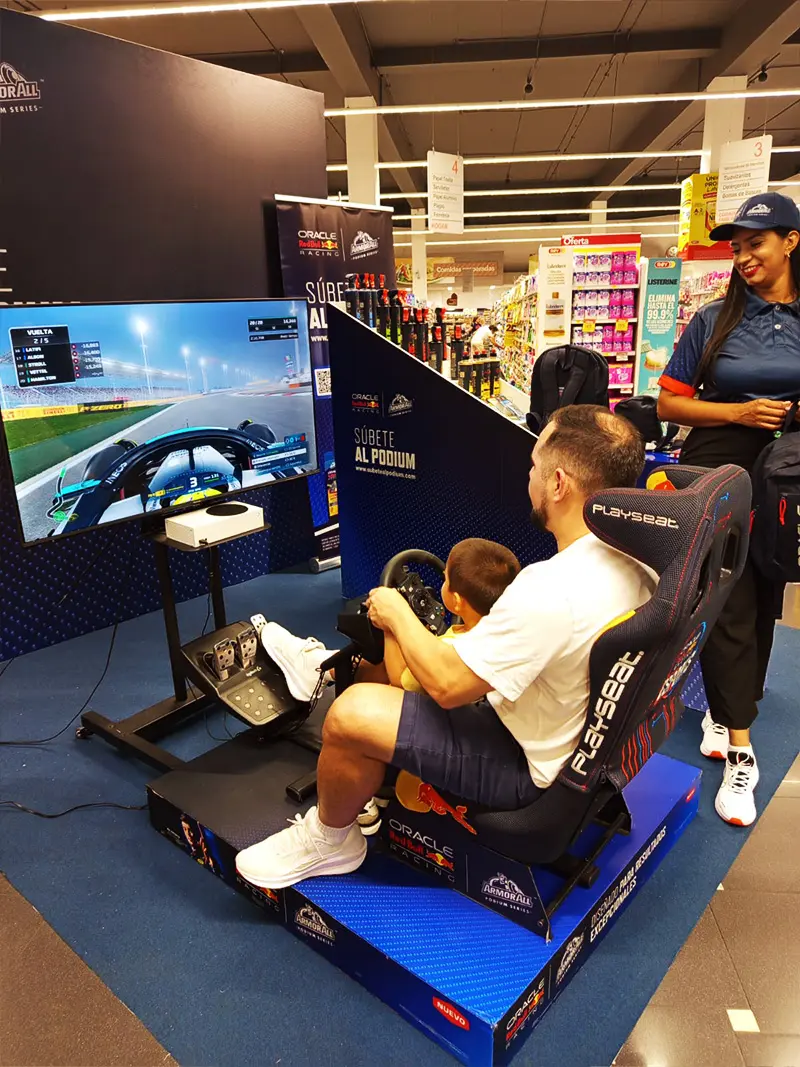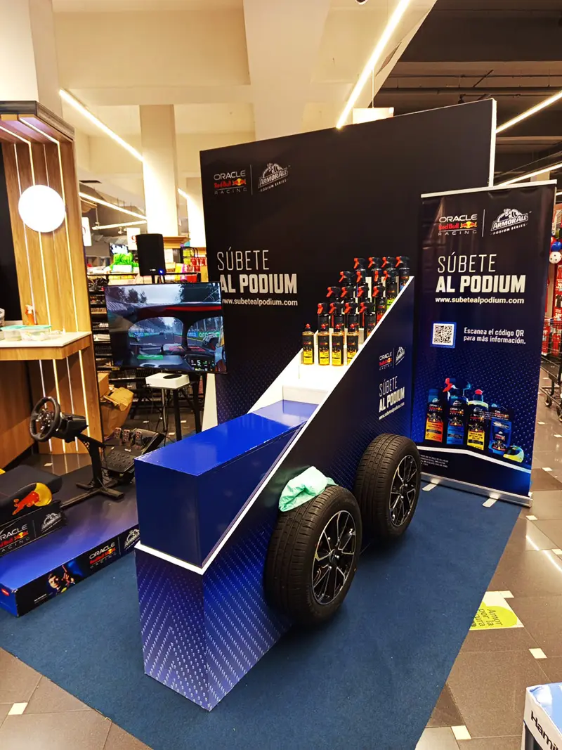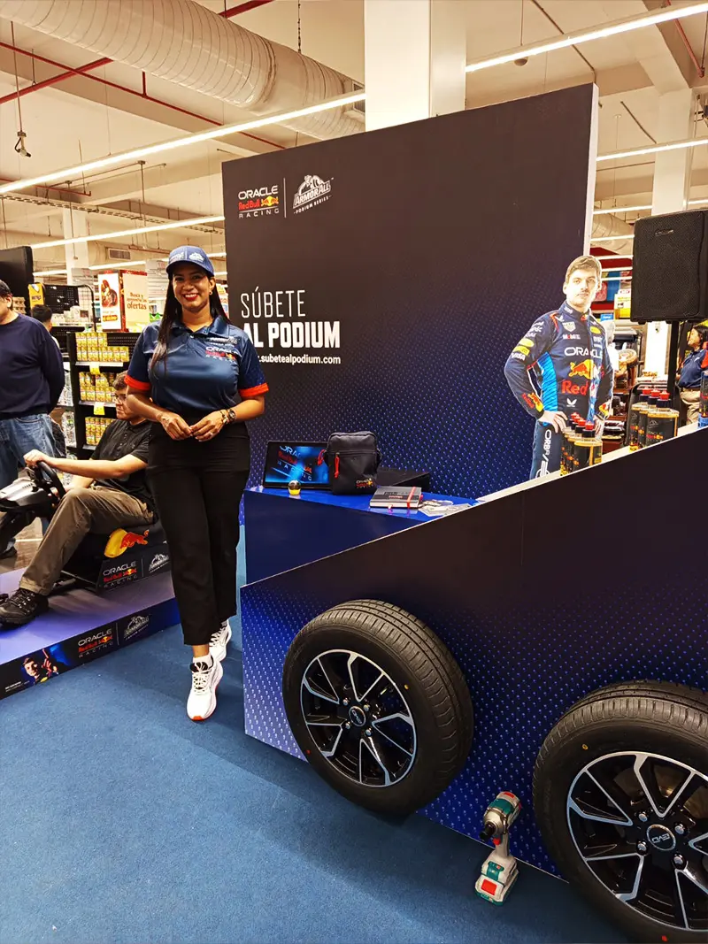 Penta Marketing se encargó del diseño y ejecución de la activación, creando una experiencia única para los asistentes. Instalamos un simulador de F1, permitiendo que las personas sintieran la velocidad, y un mobiliario interactivo donde los participantes podían competir para cambiar una llanta en el menor tiempo posible. Este mobiliario también funcionó como exhibidor de productos, maximizando su funcionalidad. Además, el cliente nos proporcionó productos promocionales que se entregaban a los participantes como parte de las compras, lo que permitió reforzar la relación con los consumidores y promocionar sus productos de manera efectiva.