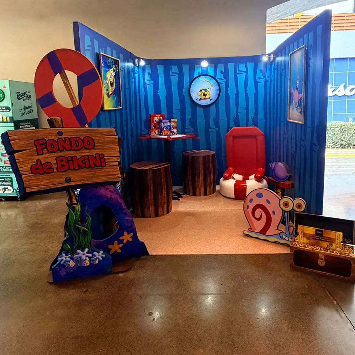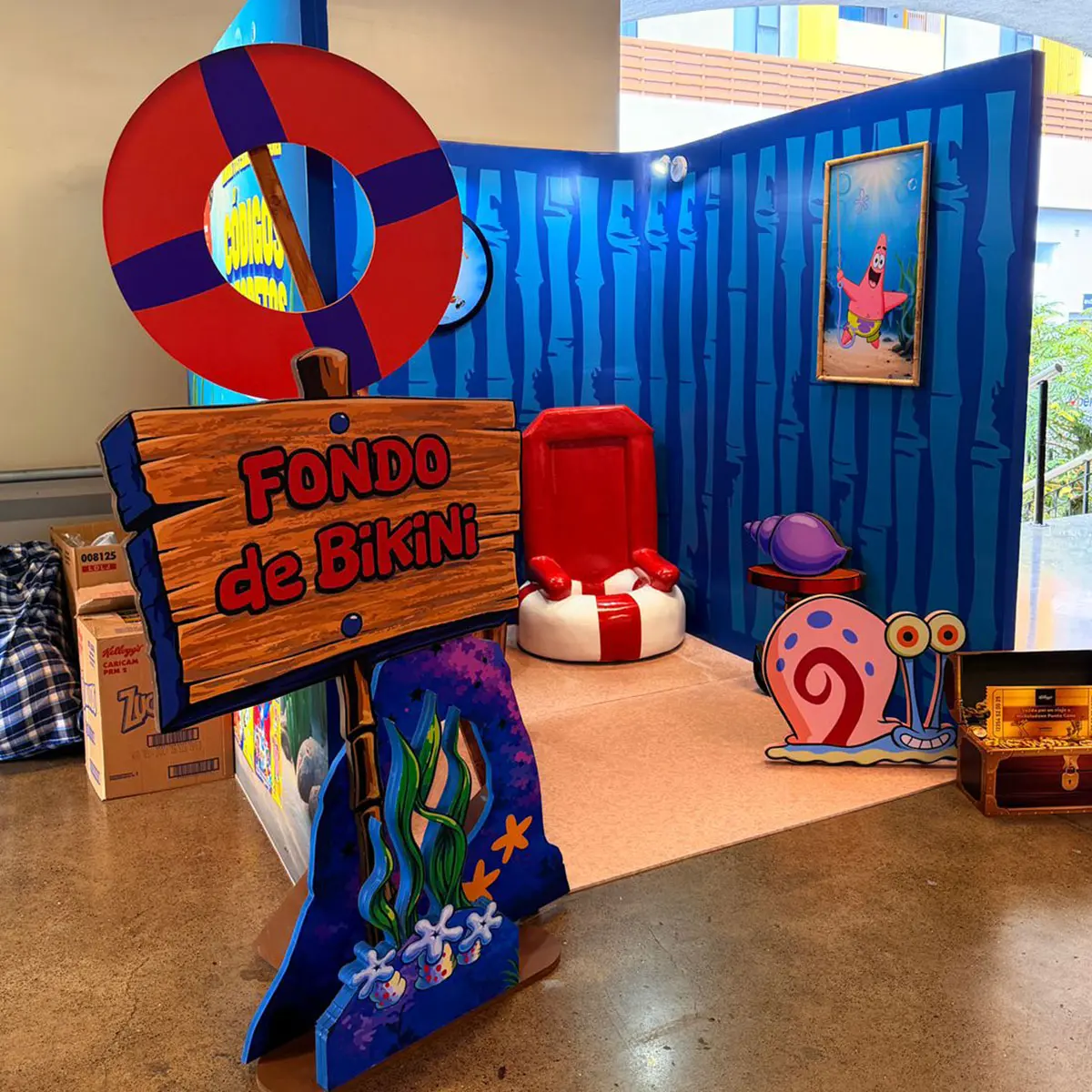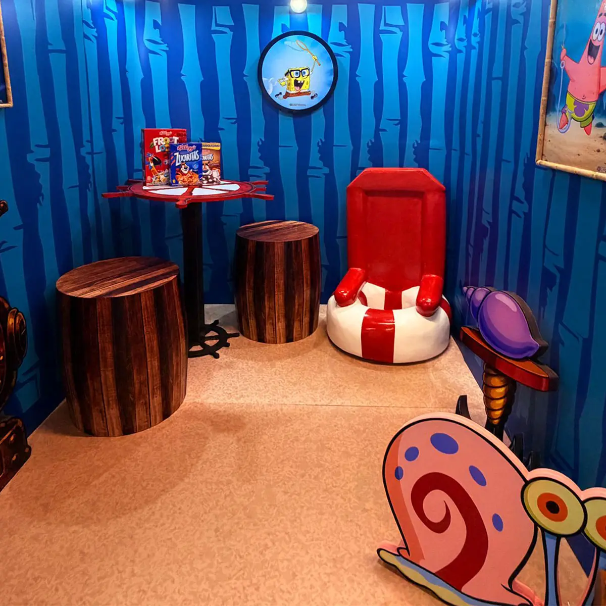 Kellogg’s aimed to develop a highly eye-catching and immersive stand inspired by the SpongeBob universe, specifically the character’s house in Bikini Bottom. The goal was to recreate a themed space that would transport visitors into this world through iconic visual elements, customized furniture, and an engaging spatial atmosphere.